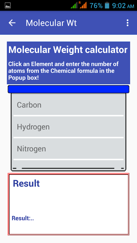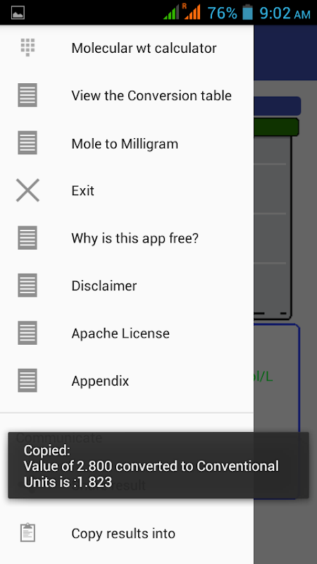 App fournit également la valeur normale provisoire de l'analyte, mais ne sont suggestifs. En outre, cette application dispose désormais d'un module pour permettre le calcul du poids moléculaire et fournit des tableaux et des notes sur les conversions.