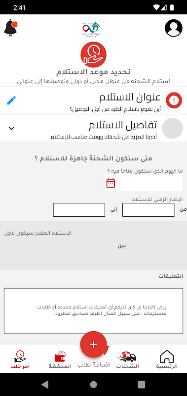 تطبيق خاص للعميل لمتابعة الشحنات و المعلومات المالية و إضافة الشحنات بكل سهولة و يسر