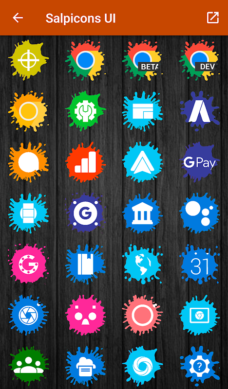 Salpicons - Icon Pack est un merveilleux pack d'icônes au style très différent des icônes traditionnelles. Votre téléphone aura l'air plein d'éclaboussures de peinture. Un style jamais vu auparavant.