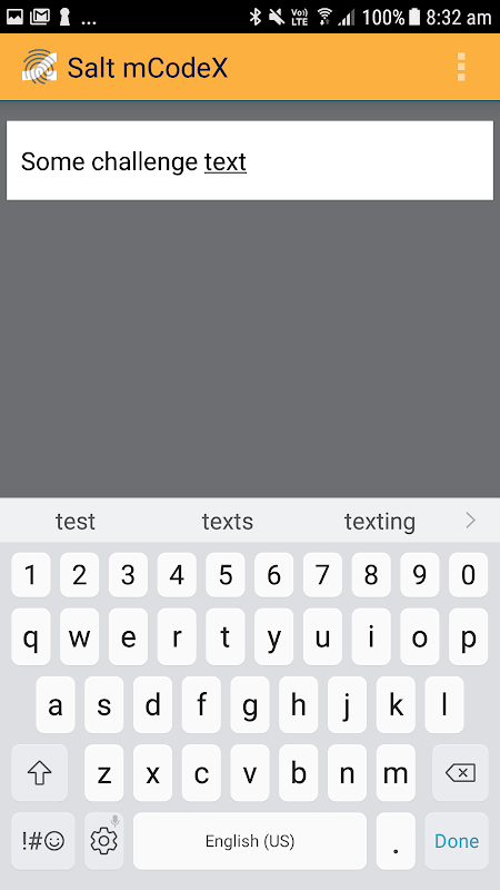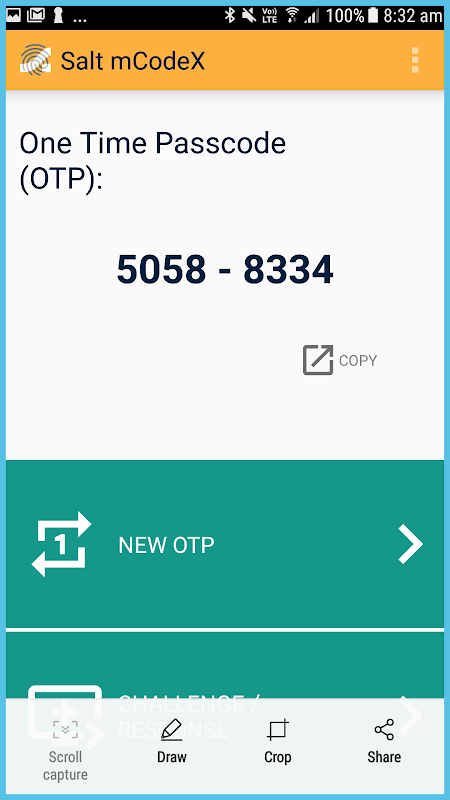 Le sel mCodeX utilise l'authentification biométrique pour générer des mots de passe One Time (OTP) et les codes de signature Challenge / Response qui sont affichées sur l'appareil Android.