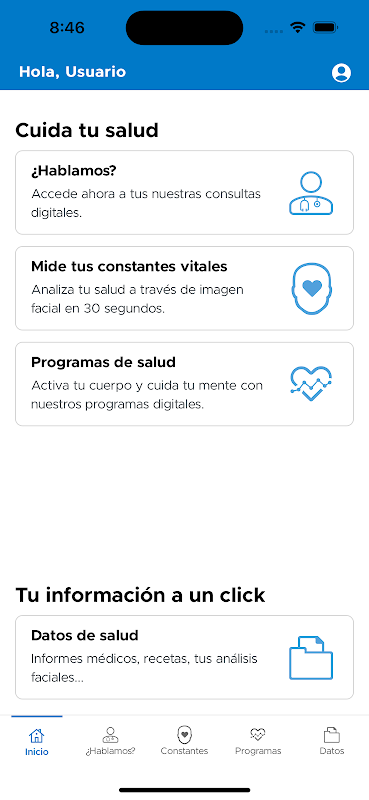 SANITAPP est le premier service de médecine numérique qui permet aux clients de se connecter à Sanitas sans être assurés. Grâce à SANITAPP, vous pourrez accéder aux capacités numériques les plus innovantes du marché, vous connecter avec les médecins de Sanitas pour poser des questions sur votre santé, mesurer vos signes vitaux ou démarrer l'un des plans de santé disponibles pour mener une vie plus saine et prévenir futures maladies. De plus, avec SANITAPP, vous aurez à votre disposition un dossier de santé où vous trouverez toutes les informations médicales que les professionnels de la santé peuvent vous fournir, telles que les ordonnances médicales électroniques ou les rapports médicaux. Gérer votre santé avec des professionnels de la santé n'a jamais été aussi facile!