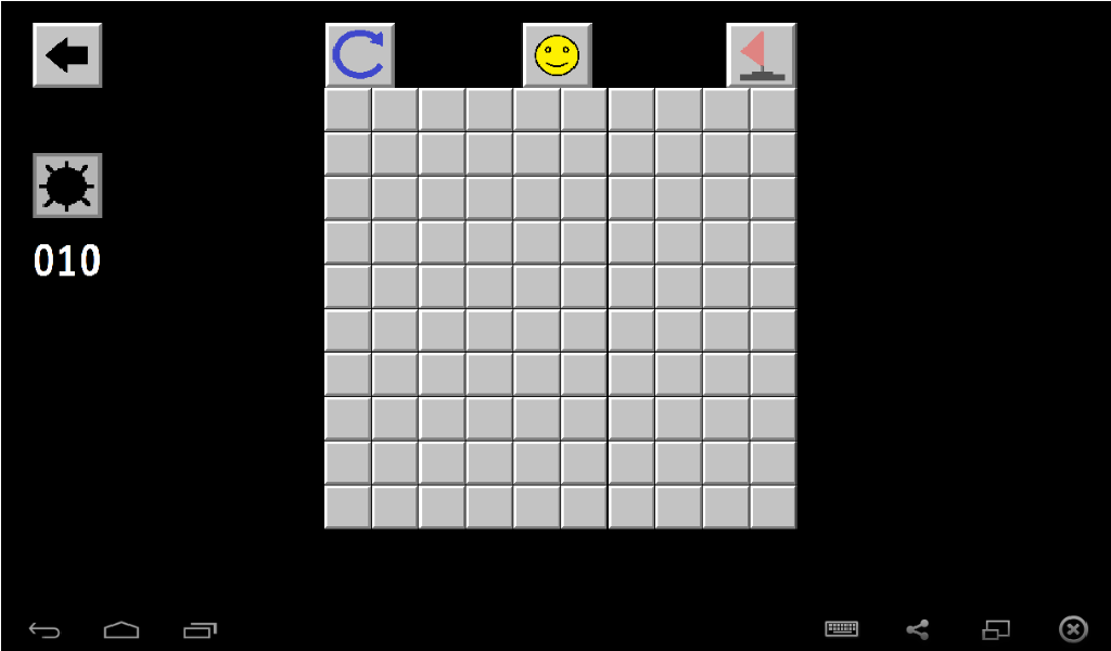 - Débutant: le nombre de cellules 10x10, 10 bombes;
