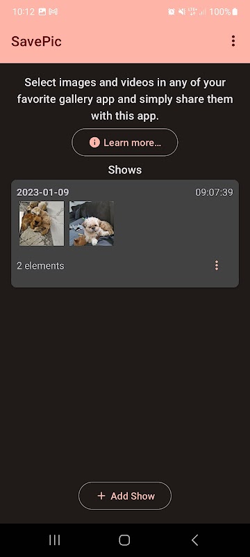 Sélectionnez vos images dans une application d'image de votre choix et partagez simplement l'image sélectionnée avec cette application. Cela démarrera le spectacle d'images qui permet aux autres de ne parcourir que les images sélectionnées et de sauvegarder votre vie privée.