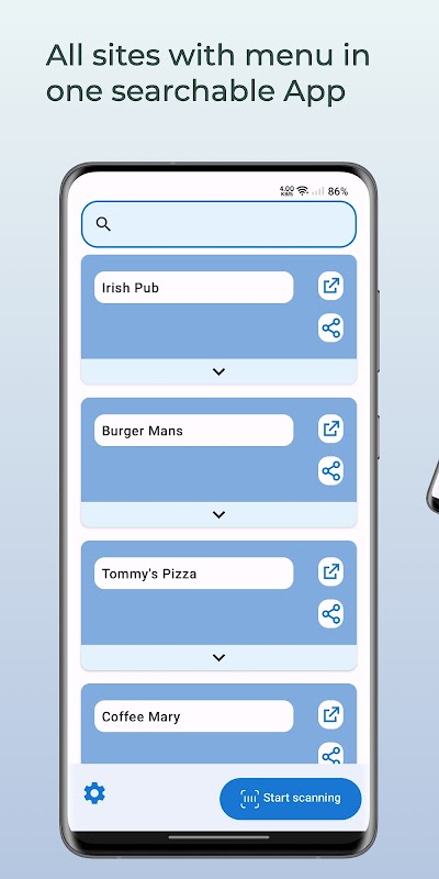 Ne vous inquiétez plus jamais de perdre un menu de bar ou de devoir parcourir une pile de menus pour trouver celui que vous cherchez, ou pire encore... le code QR d'un bar ou d'un restaurant qui n'est pas sur la table, et vous devez perdre du temps à en obtenir un.