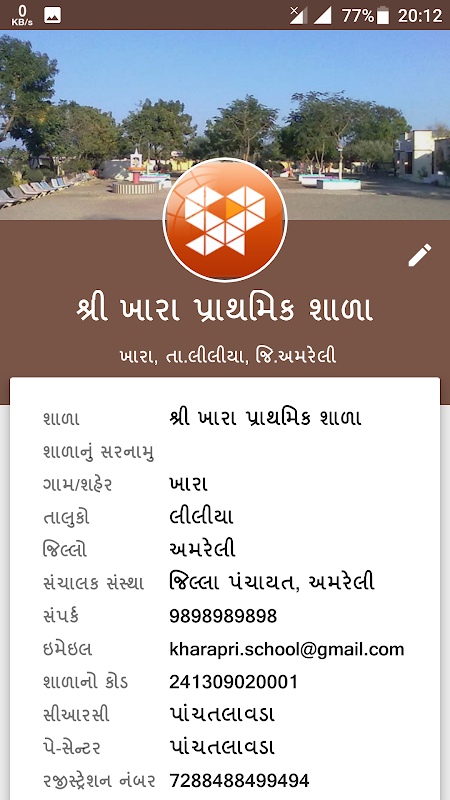 App gestion de l'école pour les écoles primaires dans le Gujarat. Vaypatrak, Profil école.