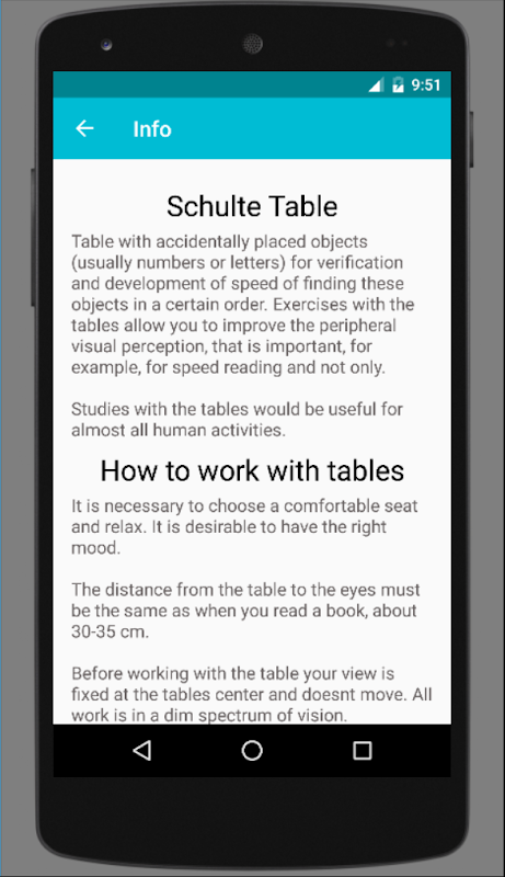 As a resultyou will activate and will develop your attention, improve your memory and increase your intelligence, with the help oftheSchulter’s tables. Thus, exercises with theSchulte tables are an integral part of various exercises to achieve the ultimate goal - speed reading skills for enhance professional skills for intellectual development, broaden their horizons, improve the quality of life.