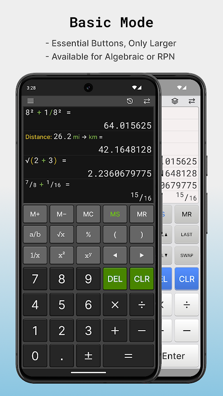 - Deux modes RPN avec prise en charge d'annulation et jusqu'à 100 registres de pile