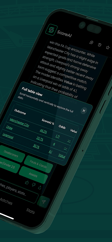 Intelligent, précis et toujours à jour, ScoreAI vous aide à voir le football sous un angle totalement nouveau.