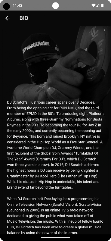The official rebuilt app of the legendary DJ Scratch and ScratchVision broadcast. Watch the ScratchVision broadcast live and join the chat, listen to DJ Scratch mixes, stream DJ Scratch Radio, and stay notified of DJ Scratch events and performances.