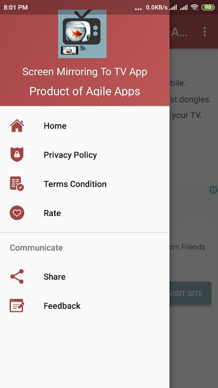 L'application Screen Mirroring to TV est assez simple et porte son nom. C'est une application simple en un clic qui reflète instantanément votre appareil mobile Android sur l'écran du téléviseur. L'application offre un partage d'écran transparent et la diffusion d'écran de n'importe quel appareil mobile Android sur l'écran du téléviseur, vous permettant de regarder des films, de jouer à des jeux ou d'écouter de la musique sur le téléviseur qui est diffusée à partir de votre appareil mobile.