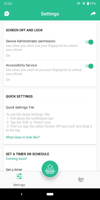 2. « Paramètres » est utilisé pour configurer les paramètres et gérer votre compte Premium.