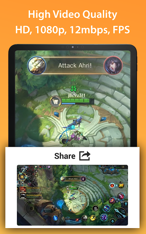 Screen Video Recorder - du recorder prend en charge l'enregistrement de l'écran de jeu dans la plus haute qualité, 1080p, 12Mbps, 60FPS. Bien sûr, vous pouvez enregistrer un écran avec une résolution réglable (240p à 1080p), une qualité et un FPS (15FPS à 60FPS).
