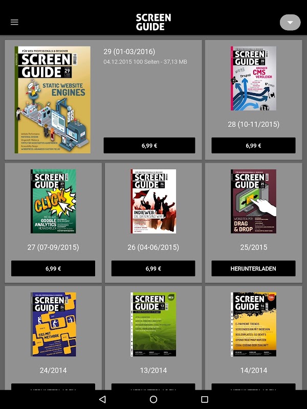 Sie können in der App sowohl ein Abonnement für die SCREENGUIDE abschließen als auch Einzelhefte erwerben.