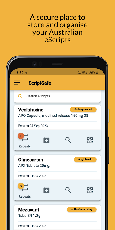 - Stockage sécurisé : gardez vos eScripts en sécurité et organisés dans un emplacement central, séparé des SMS et des e-mails.