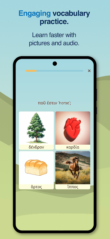 Commencez par apprendre l'alphabet et le vocabulaire de base. Scripturial contient plus de 700 activités basées sur 10 000 phrases simples, des enregistrements audio pour 7 200 mots et phrases, et plus de 1 600 images. Scripturial propose environ 45 heures de contenu pour débutants. Chaque activité devrait prendre entre 3 et 5 minutes à un débutant. Réalisez 3 ou 4 activités par jour pour terminer l'application en environ 6 mois. L'objectif principal de cette application est de fournir un contenu progressif et compréhensible, conçu pour vous accompagner dans votre apprentissage du grec biblique.