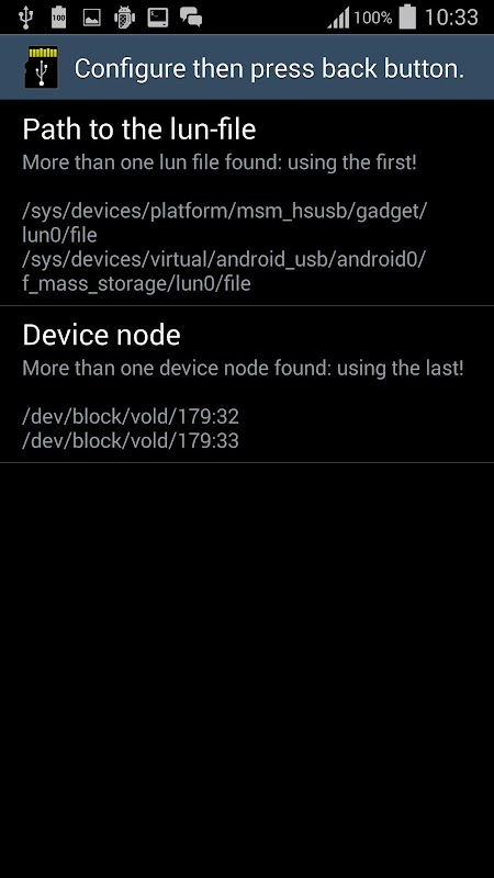 2. Widget versucht, LUN-Datei und USB-Devicenode zu finden