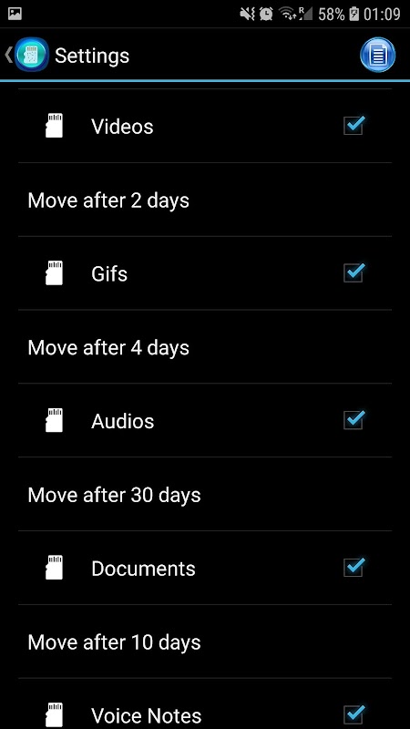 Lorsqu'il détecte de nouveaux fichiers, il les conserve quelques jours à leur emplacement d'origine, rappelez-vous que lorsqu'ils se déplacent vers la carte SD, ils ne seront pas disponibles dans WhatsApp, mais ils peuvent être consultés dans la galerie ou l'explorateur de fichiers.