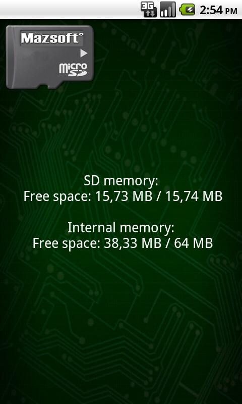 Lorsque vous cliquez sur le widget que vous pouvez ouvrir mémoire SD et les statistiques internes de mémoire.