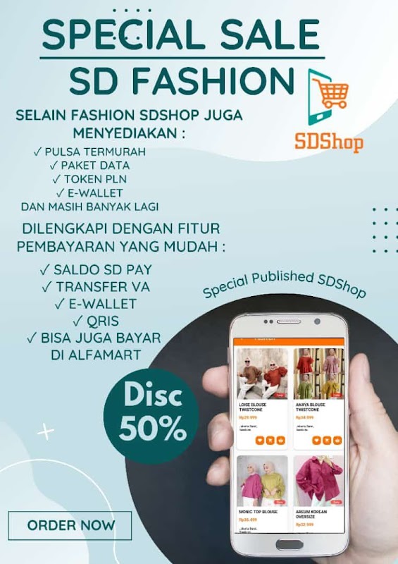 Non seulement le crédit, SDShop fournit également des produits tels que la mode, les jouets pour enfants et les marchands qui ouvrent des stands avec nous, Seblak Sigit, Timbel Arjuna, Kabayan Shop et bien d'autres.