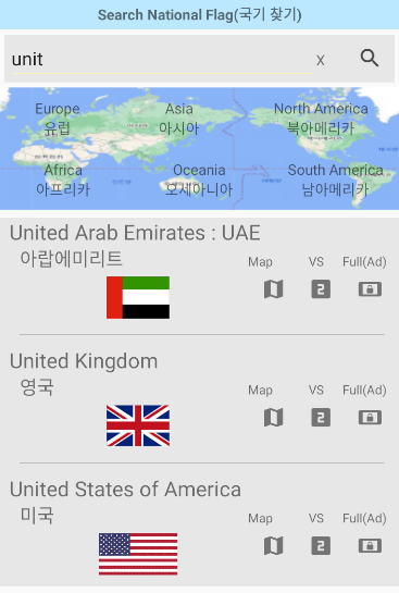 Vous pouvez vérifier les drapeaux et les informations des pays du monde entier, et vous pouvez effectuer une recherche.