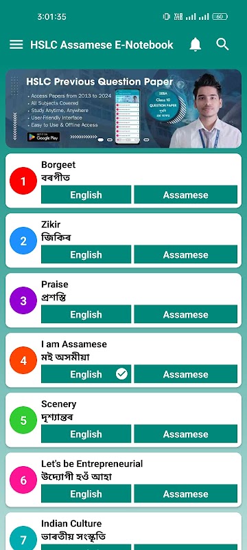 Remarque : Le cahier électronique d'assamais du SEBA/HSLC est une plateforme d'apprentissage en ligne. Cette application n'est affiliée à aucun organisme gouvernemental.