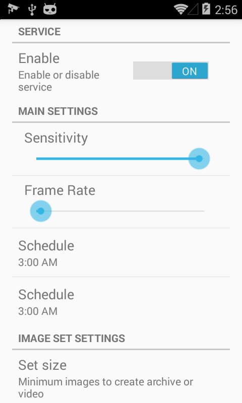 This app converts your unused phone into motion detect photo camera. Every N seconds, app look for changes, and if something detecting - take full sized photo. App not allow your devise go to sleep, so do not install to "main" phone, otherwise your battery will drain fast.