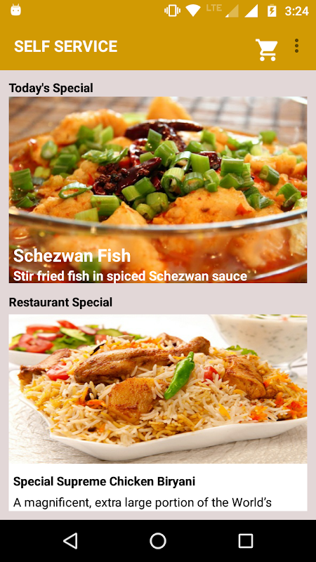 app SelfService pour commander un repas à l'Hôtel ou restaurant