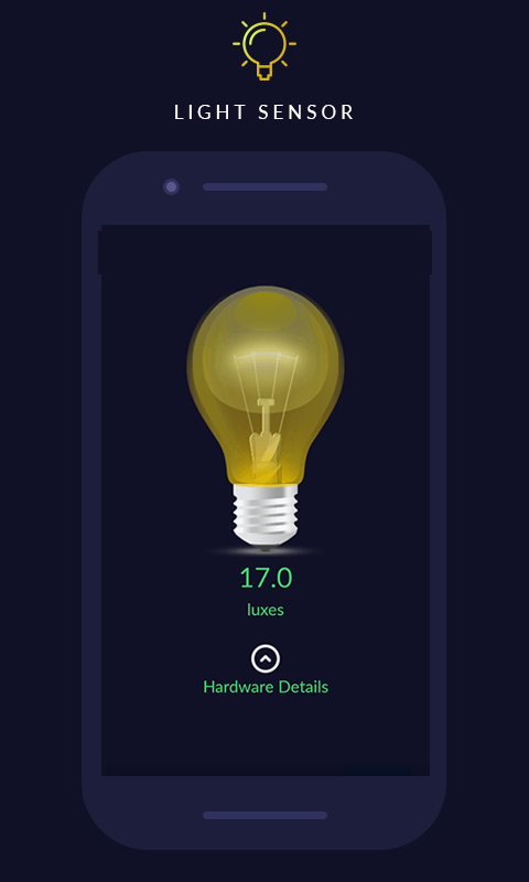 - Light sensor : This will test the light measuring sensor of your mobile. Test it by placing mobile in full light and then in full dark place. It will measure light in Luxes unit.