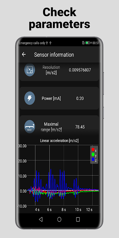 Si vous êtes propriétaire d'un appareil Wear Os, vous pouvez l'utiliser pour obtenir des données supplémentaires. Les données de mouvement d'usure sont collectées par smartphone et stockées dans des fichiers CSV individuels. Le téléphone est nécessaire pour collecter des données. En outre, vous pouvez consulter les graphiques directement dans Wear Os avec l'option de suspendre l'enregistrement.