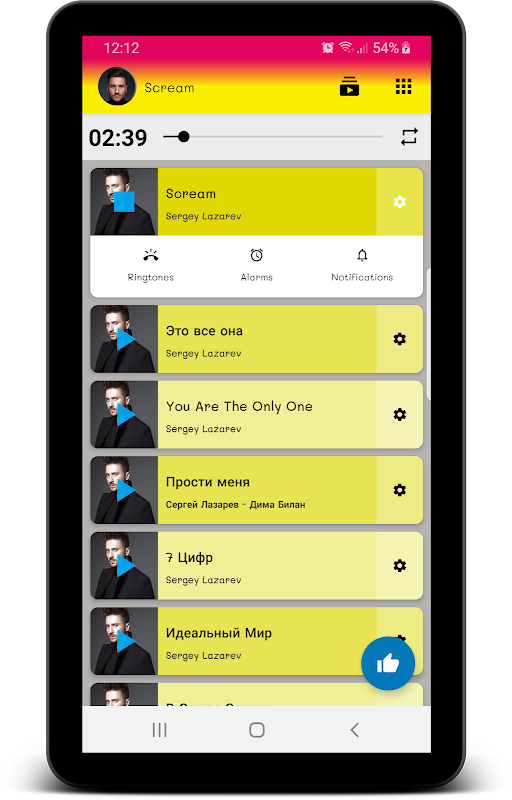 L'application "Sergey Lazarev songs" contient les meilleures chansons de Sergey Lazarev
