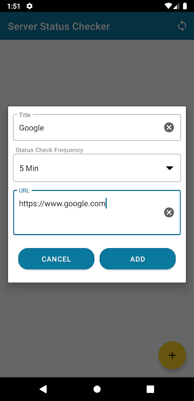 4. Add the URL of your server or any URL which you want to track. URl must start from http or https.