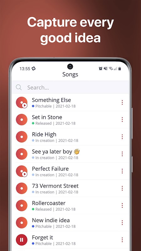 Songwriting collaboration! Record, store and share audio and lyric ideas whilst tracking all song information like splits and co-creators.