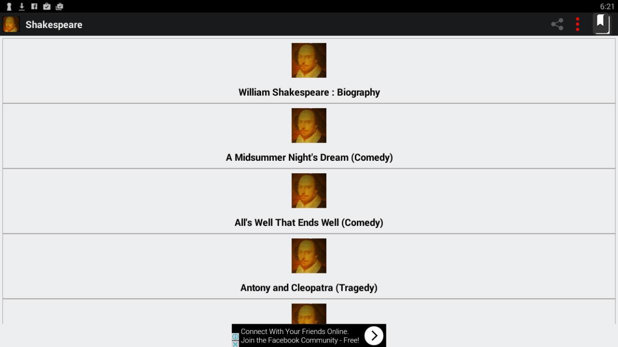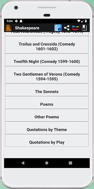 This is a book app of William Shakespeare. All works of William Shakespeare have been included in this book app. It is a collection of all plays (total 37), poems (34), sonnets (total 154), famous quotes or quotations of William Shakespeare from his plays. You can know the quotations from which plays. All are nicely categorized.