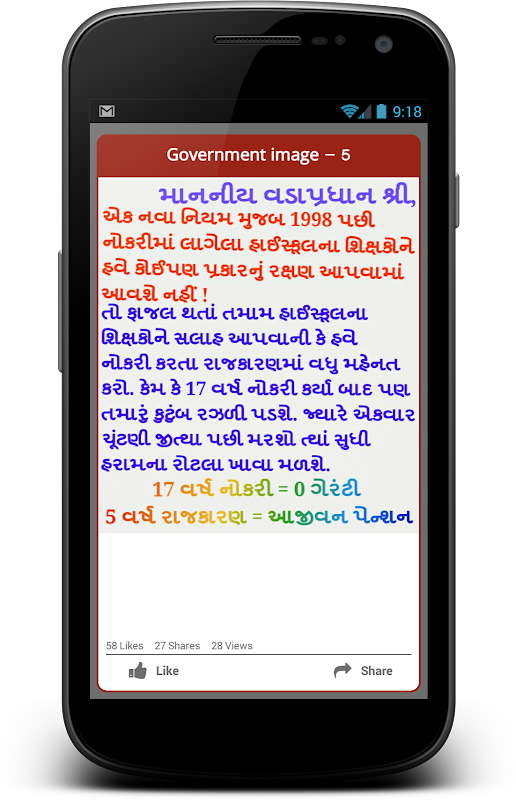 User can share our views on Facebook, Google +, WhatsApp, Twitter and other social platforms through this app directly.