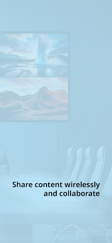 Utilisez l'application pour refléter l'écran de votre appareil sur l'écran. Vous pouvez également partager des images ou des vidéos de votre appareil ou des images capturées à l'aide de votre appareil photo. Plusieurs éléments peuvent être partagés simultanément, apparaissant côte à côte sur l’écran.