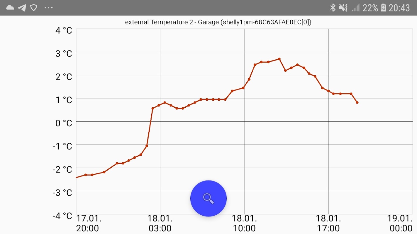 Toutes les sorties du capteur de données Shelly peuvent être enregistrées dans l'application - sans cloud. Les données sont visualisées sous forme de diagrammes.