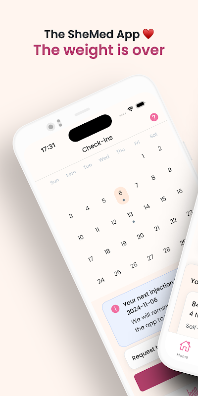 Connectez-vous chaque semaine pour entrer en contact avec un membre de l'équipe SheMed, fournir une pesée précise et recevoir des conseils et des rappels pour terminer votre injection. Nos enregistrements garantissent que vous restez sur la bonne voie et respectez le processus de traitement afin que vous puissiez profiter des progrès que vous réalisez tout au long du programme. Nous sommes là pour vous à chaque étape du voyage.