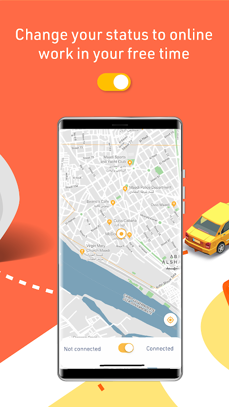 اذا كان مزاجك معتدل وجدولك مناسب, غير حالتك الى "متصل" وسوف تأتيك طلبات العملاء من المتاجر القريبة منك, توجه للمتجر وقم بشراء المنتج للعميل, وتوجه مباشرة للعميل لتسليم الطلب والحصول على قيمة الطلب والتوصيل نقدا.