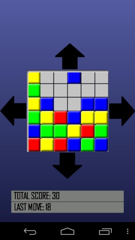If you form groups of 3 or more blocks of the same color, they will be removed, giving you more space to move the blocks further.