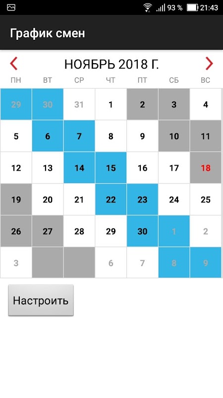 L'application est facile à utiliser. Vous devez choisir un horaire de travail et marquer les dates auxquelles vous êtes affecté. L'application calculera et mettra en évidence les jours ouvrables à l'avance.