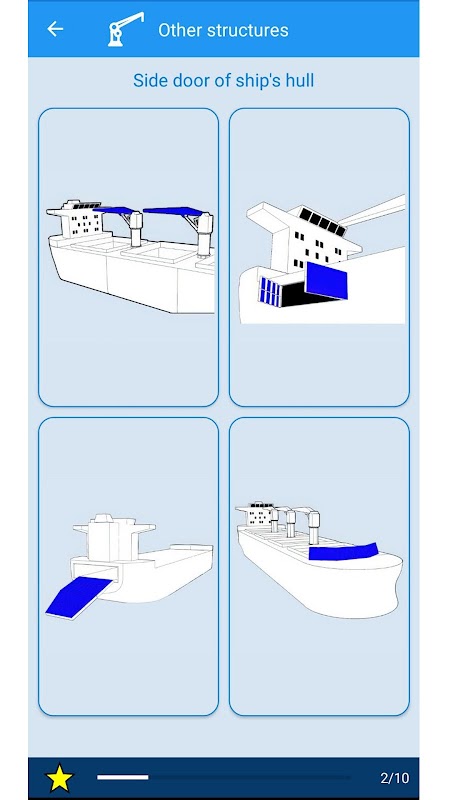Avec cette application, vous apprendrez et mémoriserez tous les éléments de la coque d'un navire. Chaque élément de la coque du navire est accompagné d'une illustration. Il y a 8 leçons dans l'application. Après chaque leçon, vous devez passer un test. À la fin de toutes les leçons, il est nécessaire de passer un test général de connaissance de tous les éléments de la coque du navire. Essayez notre application - elle vous sera utile pour votre travail à bord.