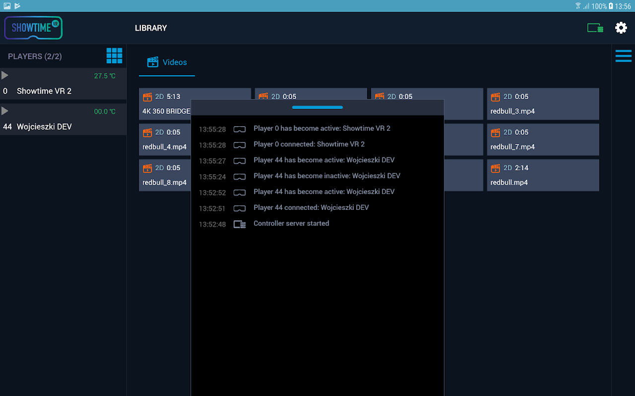 L'application du contrôleur est installée sur une tablette ou un smartphone. Le contenu peut être lu de manière synchrone sur tous les casques ou de manière asynchrone. Showtime VR est conçu pour les présentations professionnelles, les activations de campagnes marketing, les films - solution de cinéma VR, solutions de kiosque - peu d'implication du personnel, présentations équitables, événements - partout où vous devez avoir un contrôle total sur les casques VR et le contenu présenté sur eux, où vous devez gérer à distance les casques VR et souhaitez présenter le contenu VR de manière synchronisée.