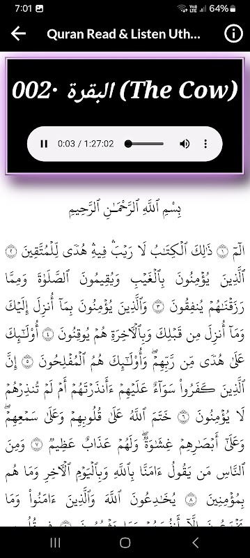 Voici le Coran complet de Cheikh Shuraim hors ligne. Téléchargez-le et écoutez-le en entier. Grâce à cette application, vous pouvez désormais écouter et lire le Coran sur la même page. Plus besoin de jongler entre les activités.