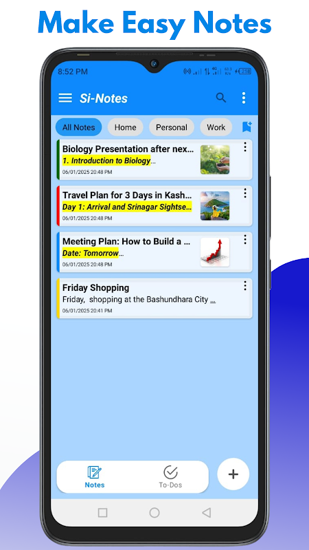 Vous recherchez l'application de bloc-notes Android ultime pour capturer des idées, gérer des tâches et rester organisé ? prenez des notes, créez des listes de tâches détaillées et trouvez facilement vos besoins grâce à notre recherche puissante. Profitez d'une interface claire et intuitive conçue pour une prise de notes sans effort.