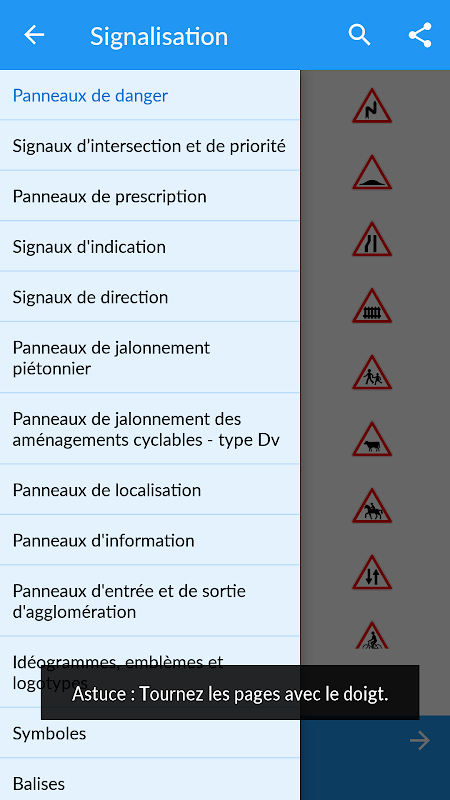 Fiches de révisions des panneaux du code de la route sont au menu.