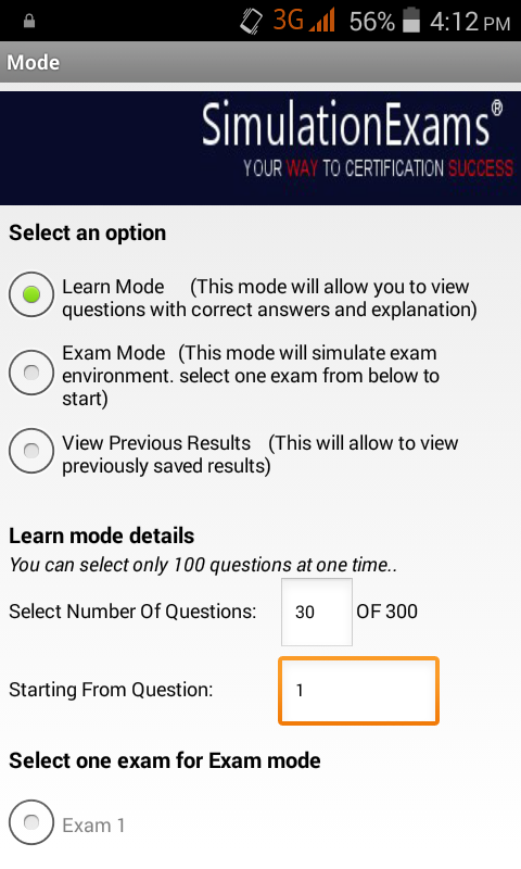 L'explication complète est fournie pour chaque question en mode savoir, et de l'environnement de l'examen réel est simulé en mode d'examen. Options pour enregistrer les résultats et les questions examen sont fournis.
