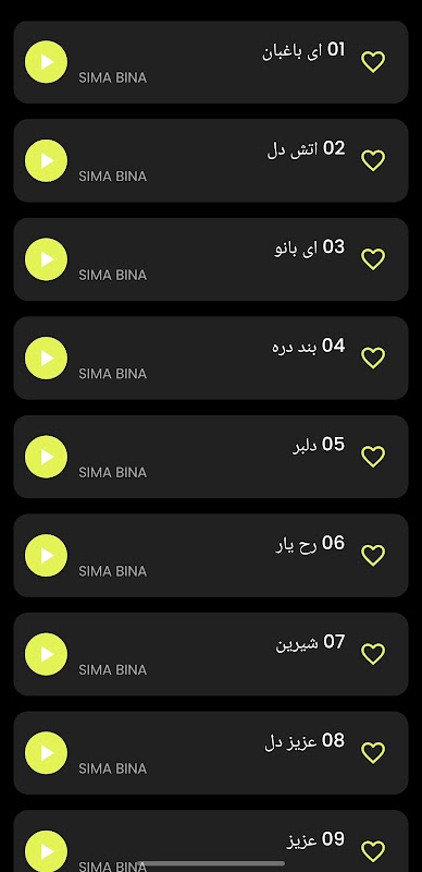 Vieilles versions de Sima Bina سیما بینا بدون نت