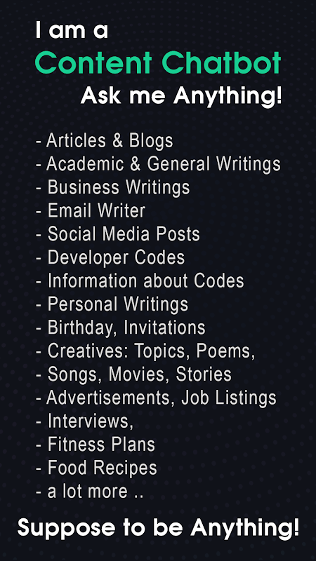 - Amusez-vous : Simple Chatbot AI peut vous aider à créer des conversations, à raconter des blagues et à trouver des recettes.
