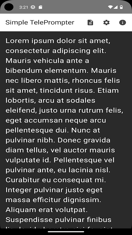 Simple TelePrompter est une application de prompteur légère et intuitive, conçue pour les orateurs, les présentateurs, les créateurs de contenu et toute personne devant lire un texte tout en maintenant le contact visuel avec son public. Grâce à son interface épurée et ses options de personnalisation, elle transforme votre appareil Android en un outil de prompteur professionnel.