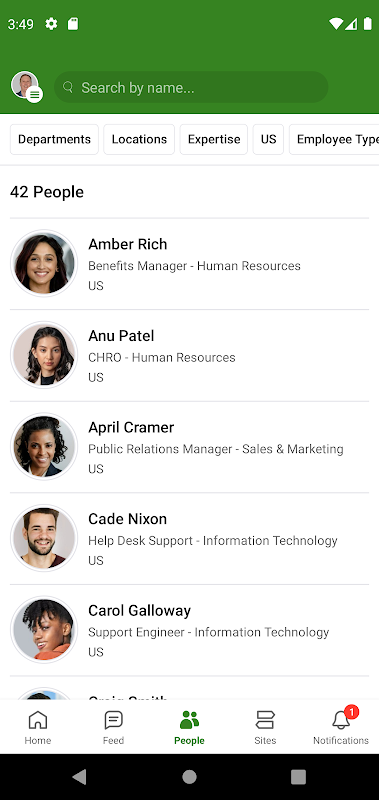 Trouvez et appelez des experts avec un répertoire d'employés qui dresse le profil des compétences et de l'expertise du domaine de vos collègues afin que vous puissiez toujours vous connecter avec la bonne personne